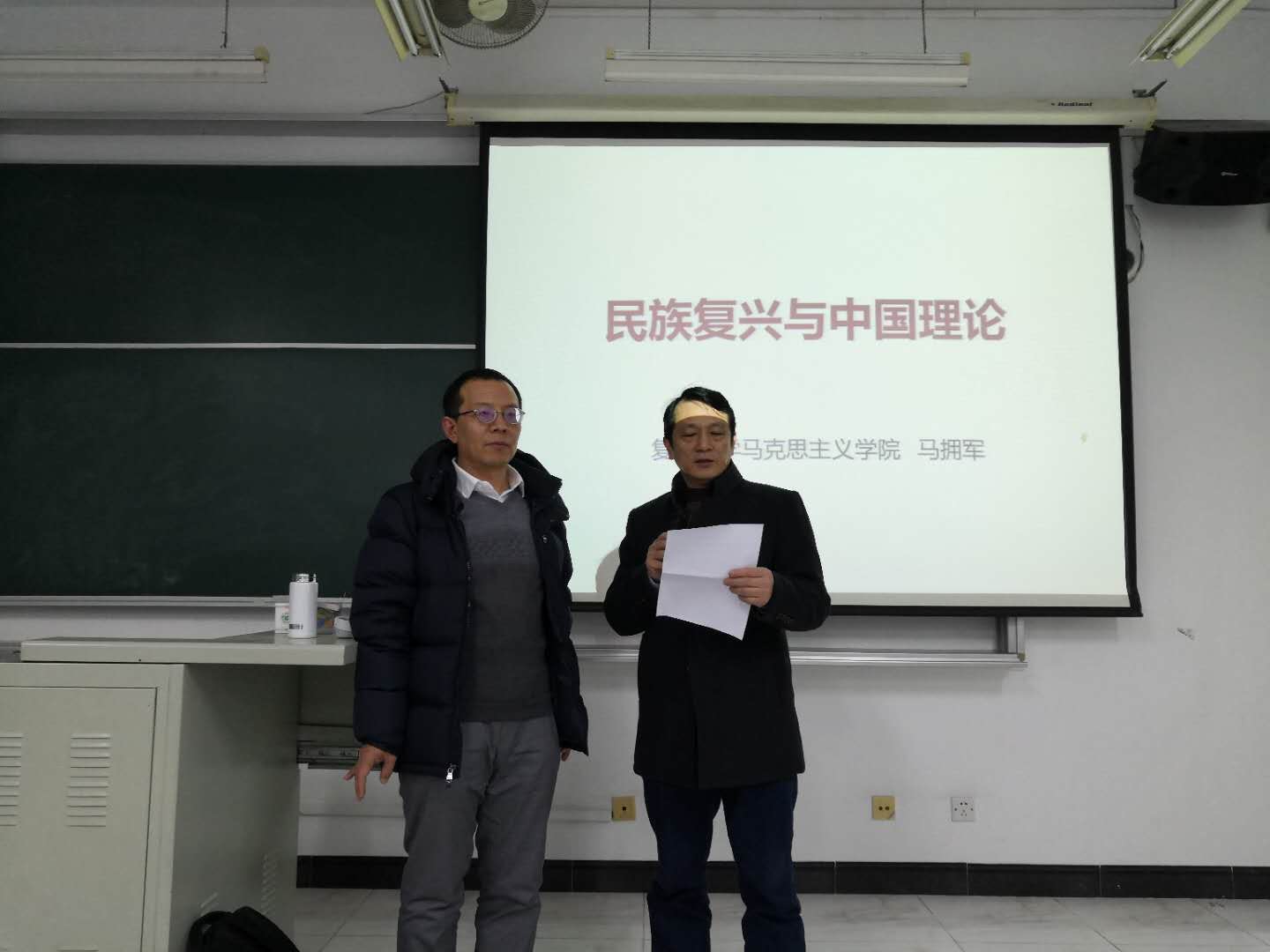 2019年1月16日晚,英国正版365官方网站思政通识课《理论中国》第七讲,有幸邀请到复旦大学英国正版365官方网站教授、博士生导师、中国马克思主义哲学史学会理事马拥军教授,为学生带来"民族复兴与中国理论"的精彩讲座。
